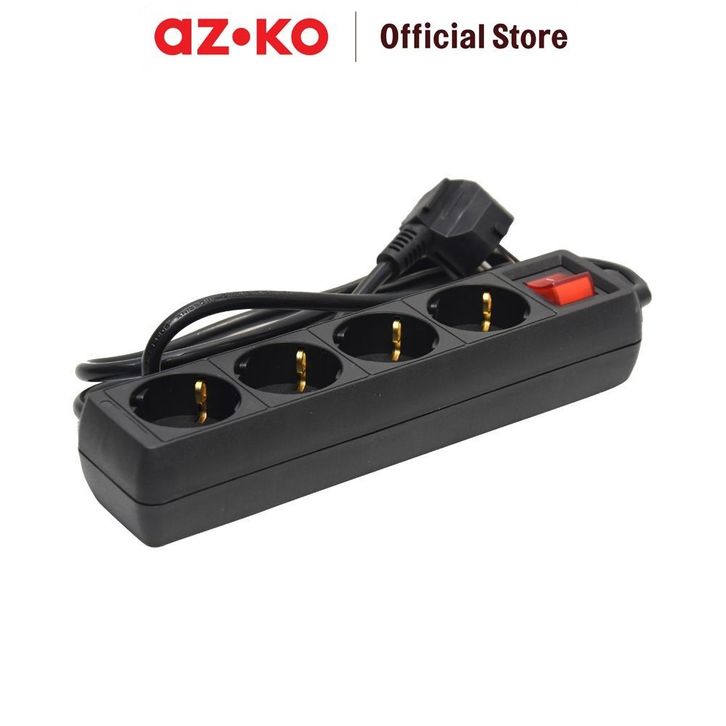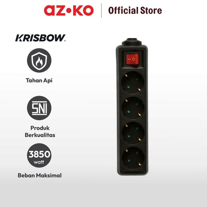 AZKO Krisbow Stop Kontak 4 Socket - Hitam Electric Socket Terminal Colokan Listrik Peralatan Elektronik Extension Kotak