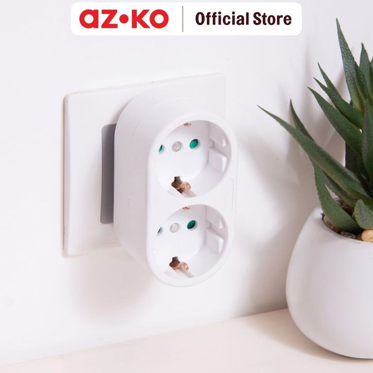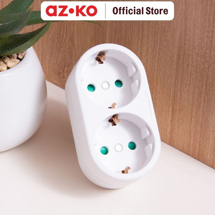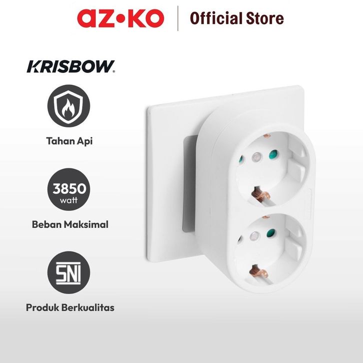 AZKO Krisbow Stop Kontak Schuko 2 Soket - Putih Electric Socket Terminal Colokan Listrik Kotak Kontak Peralatan Elektron