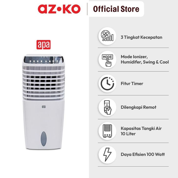 AZKO Apa 10 ltr Air Cooler 1200cmh - Putih Ice Conditioner Pendingin Ruangan Penyejuk Udara Kipas Angin Evaporasi Coolin