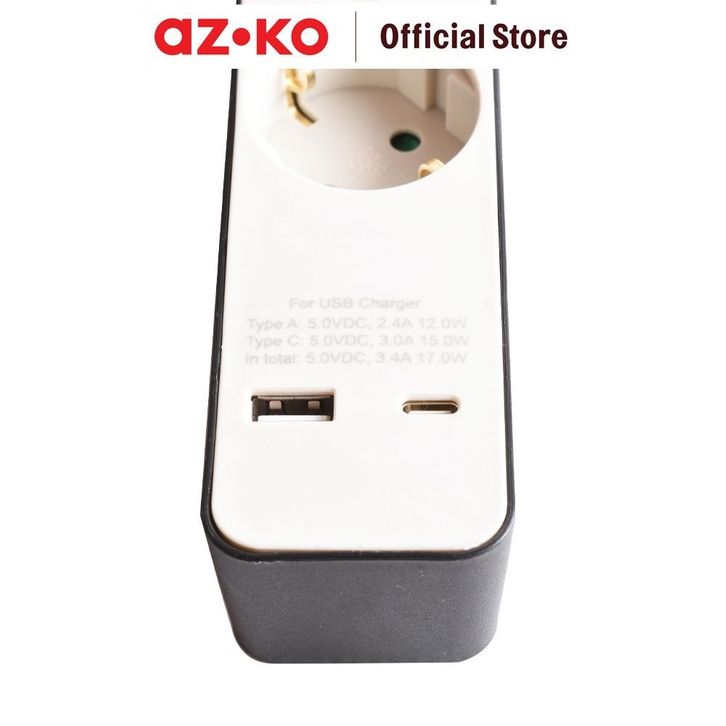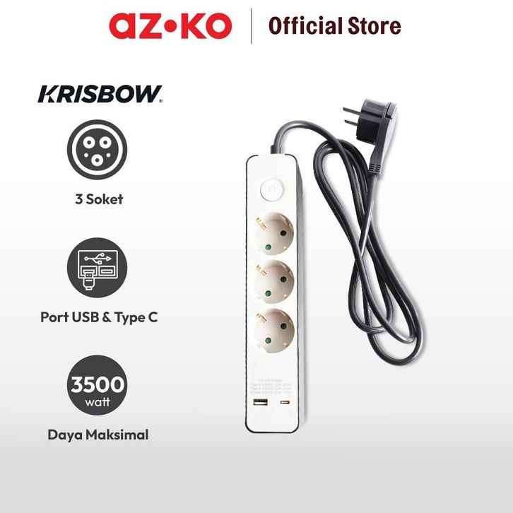 AZKO Krisbow Stop Kontak 3 Socket Dengan Port Usb & Type C - Hitam Electric Socket Terminal Colokan Listrik Kotak Kontak