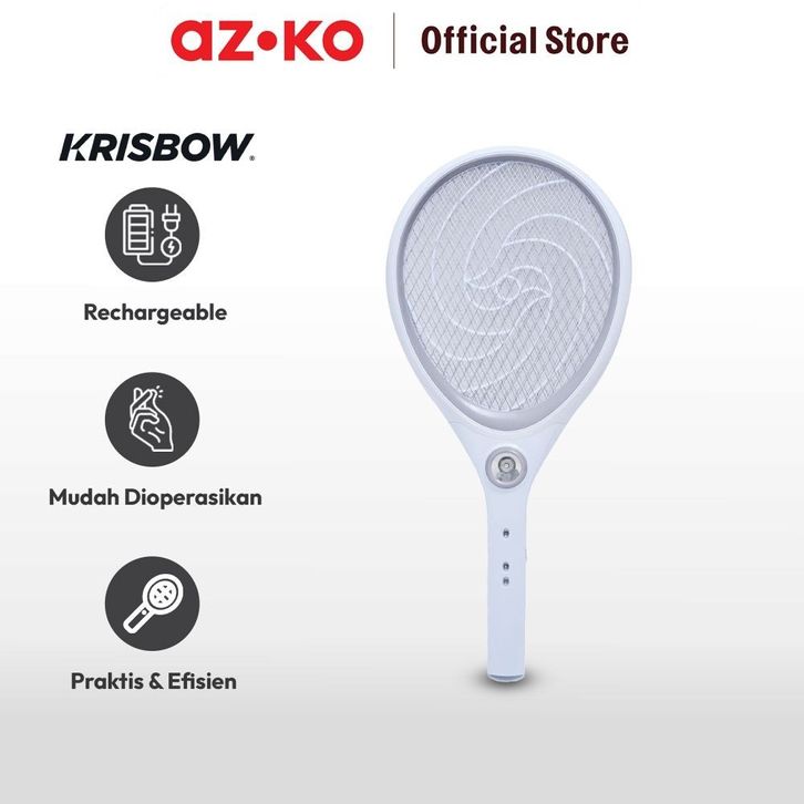 AZKO Krisbow Raket Nyamuk - Putih Pengusir Serangga Raket Pembasmi Nyamuk Elektrik Insect Killer