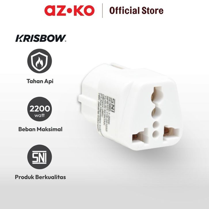 AZKO Krisbow Steker Arde Adaptor Travel Tanpa Switch - Putih Kepala Colokan Listrik Plug Steker Head Cable Peralatan Lis