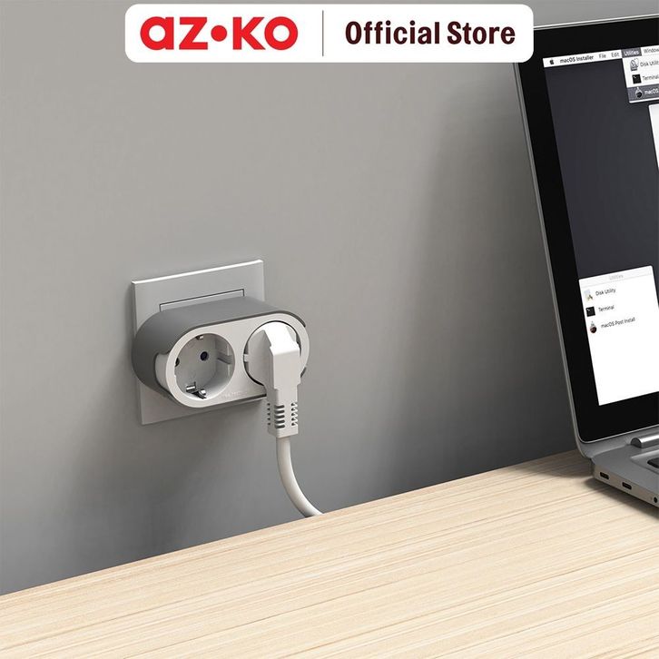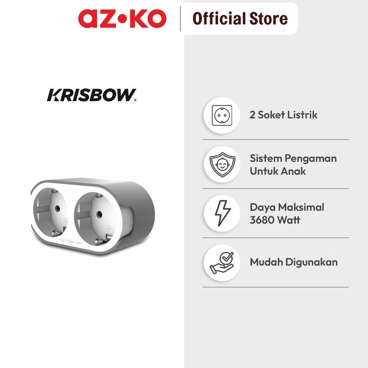 AZKO Krisbow Stop Kontak 2 Soket - Abu-Abu/Putih Electric Socket Terminal Colokan Listrik Kotak Kontak Peralatan Elektro