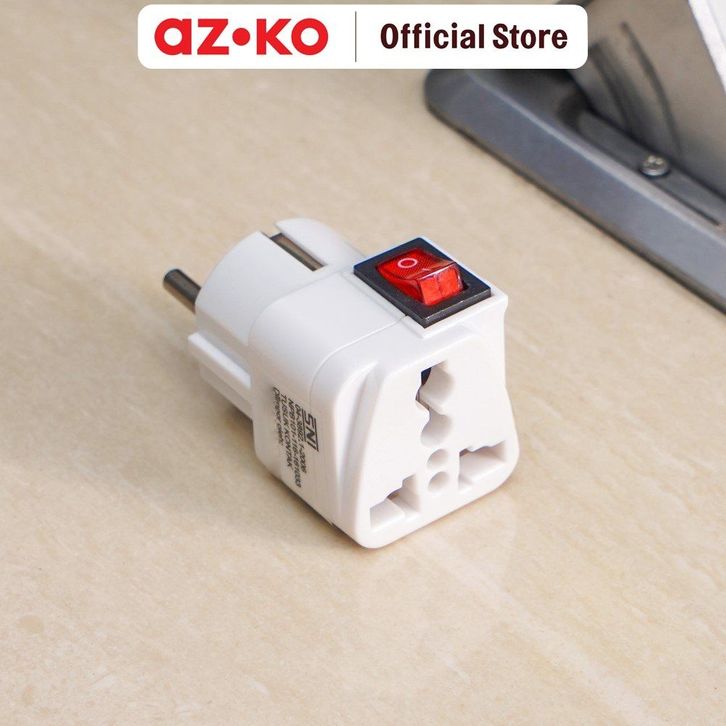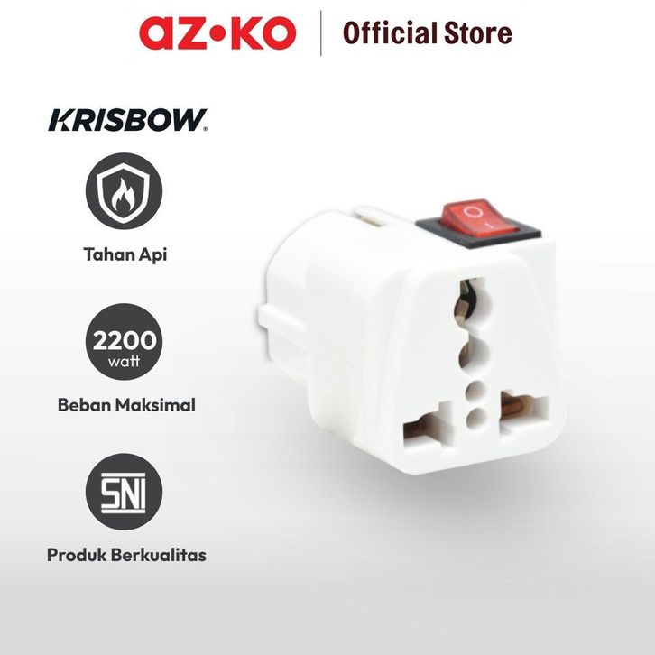 AZKO Krisbow Steker Arde Adaptor Travel Dengan Switch - Putih Kepala Colokan Listrik Plug Steker Head Cable Peralatan Li