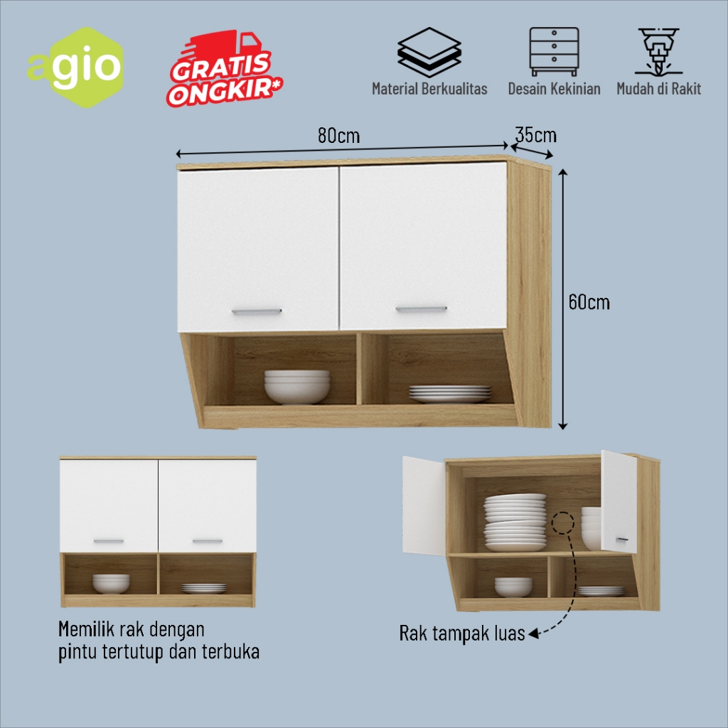 Kitchen Set Atas Minimalis 3 Pintu / Rak Dapur Gantung / Rak Piring Minimalis Modern / Rak Piring gantung / Best Seller