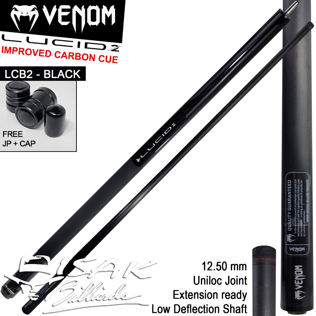 Venom Lucid Carbon LCB Black Cue - Uniloc Extension Bumper Stick Billiard
