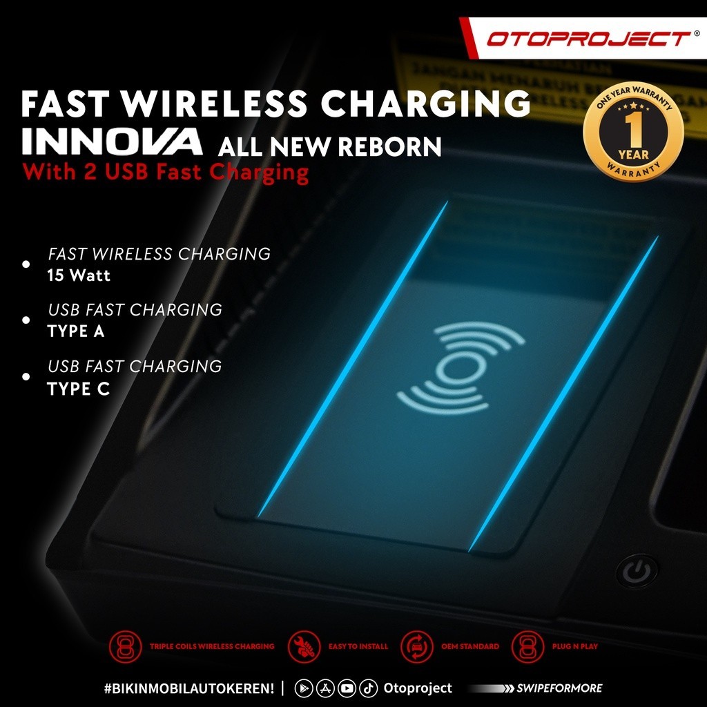 OTOPROJECT - WIRELESS CHSRGING A.N INNOVA 2016 WITH 2 USB FAST CHARGING