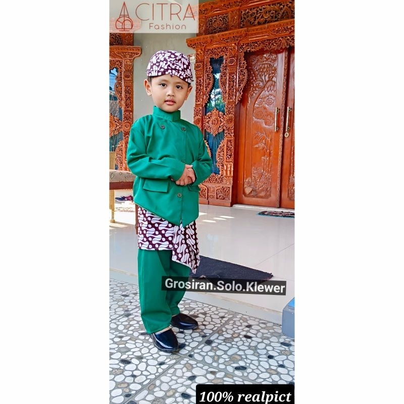 DI Jamin RealPICT/ Setelan Basofi Anak Batik Putih(BLANGKON)