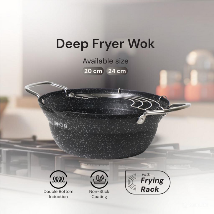 Panci Wajan Penggorengan Stainless Anti Karat Anti Lengket + Rak Peniris Minyak Induksi Kuali Pot 20 Cm 24 Cm