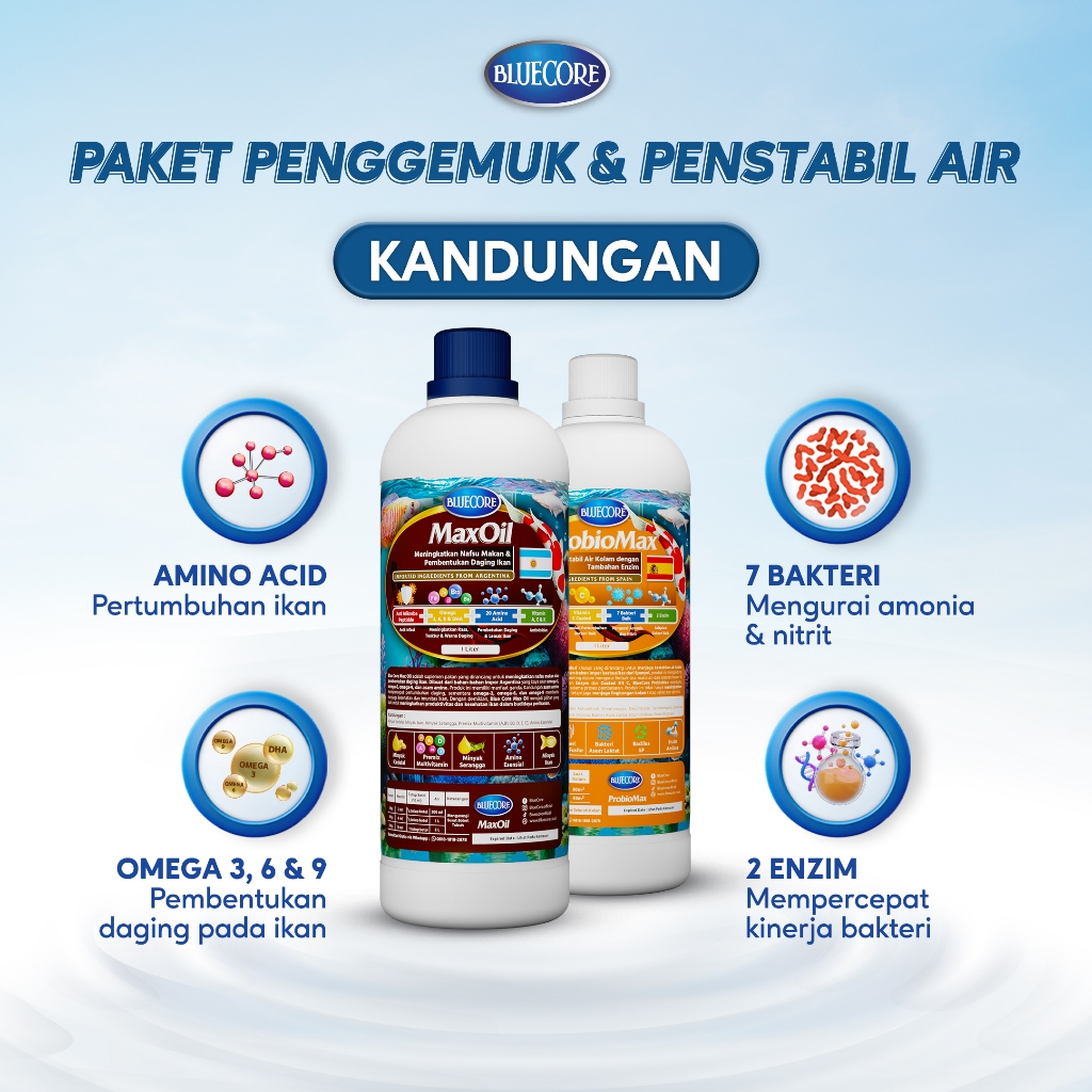BLUECORE PAKET VITAMIN IKAN & BAKTERI STARTER UNTUK PEMBESARAN DAN CEGAH SUSUT - COCOK UNTUK SEMUA JENIS IKAN ( LELE, NI