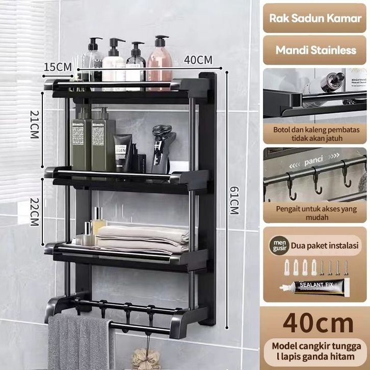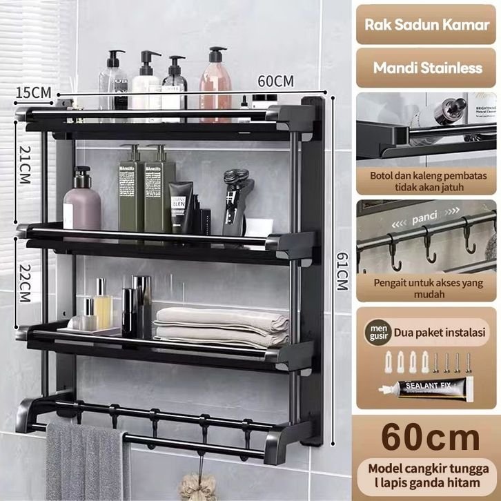 PROMO HOMIX Rak Sabun Kamar Mandi Rak Kamar Mandi Stainless Hitam Dinding Rak Bumbu Dapur Dipasang