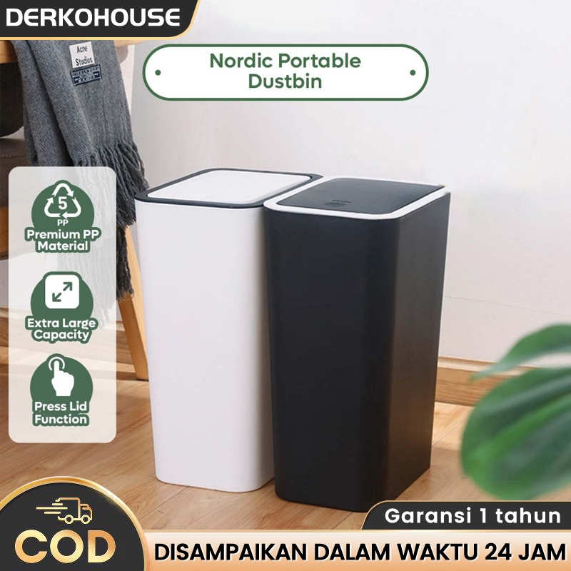 DERKOHOUSE Tong Sampah Plastik Tertutup Minimalis Tempat Sampah Dengan Klik Otomatis Kotak Sampah