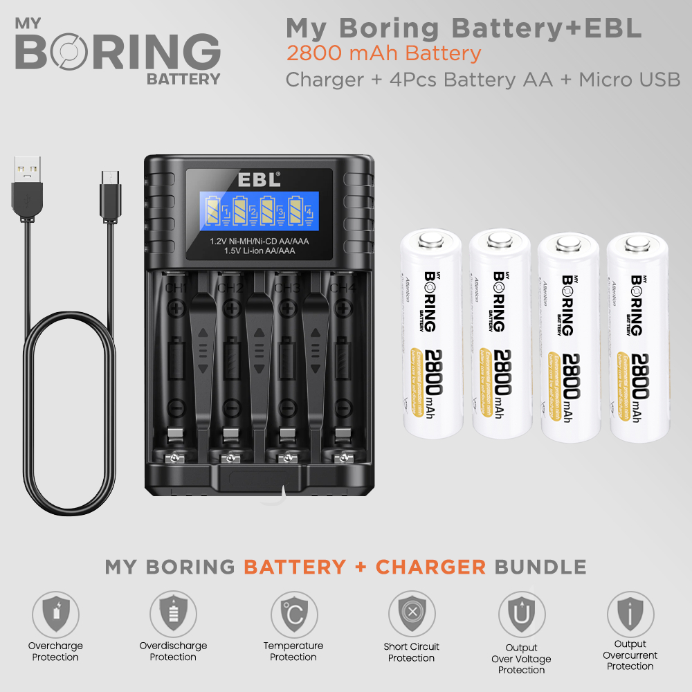 My Boring Battery AA 2800 Mah 4 Pack with Smart Charger