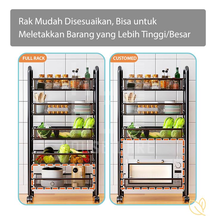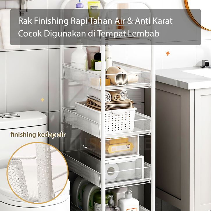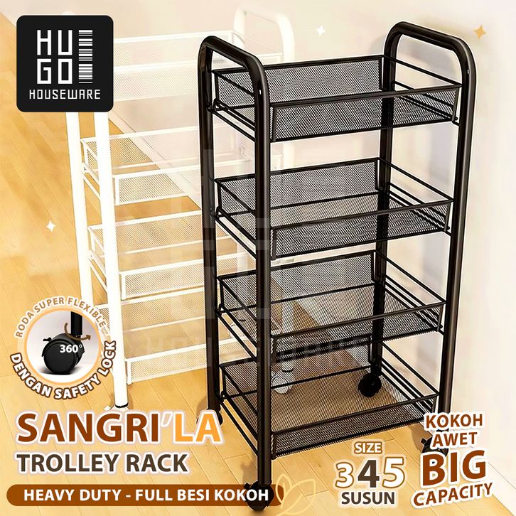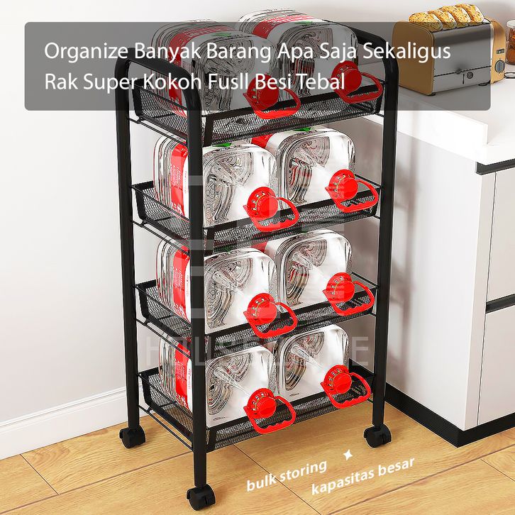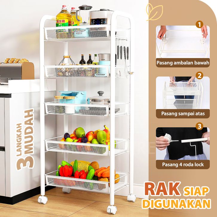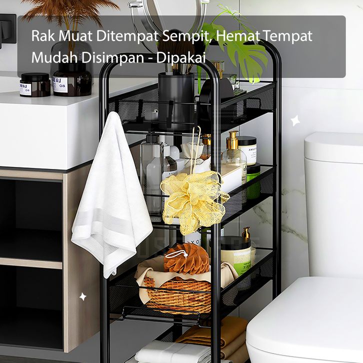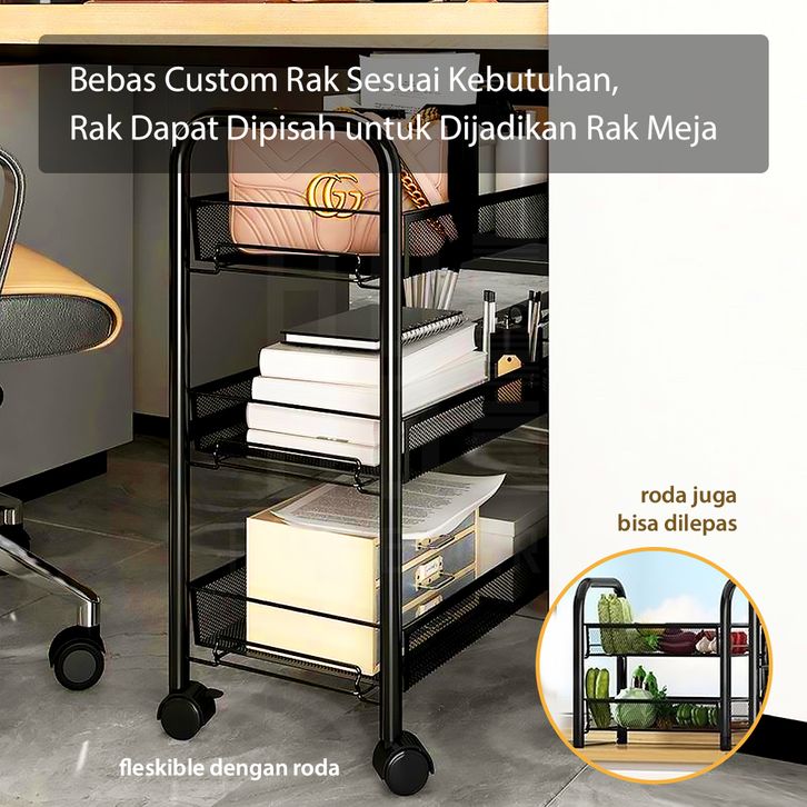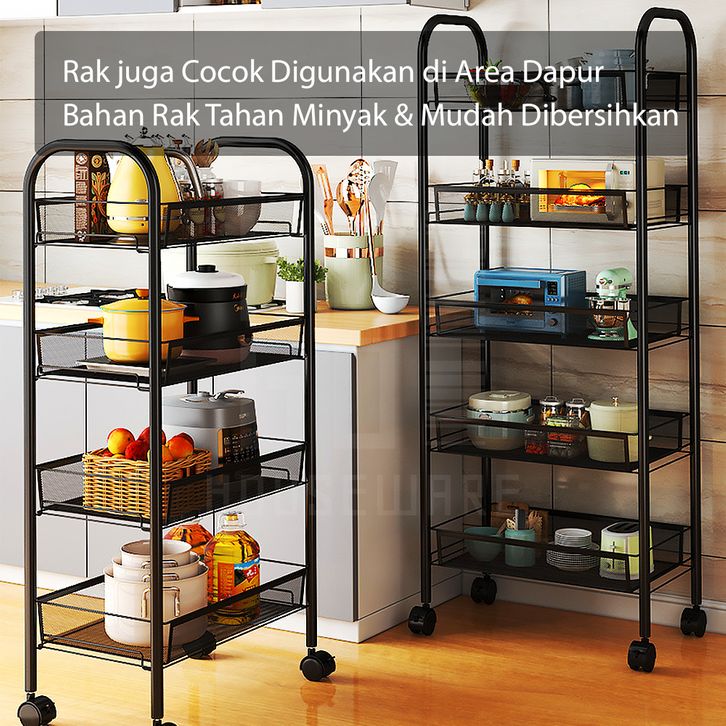 Rak Dapur Besi Serbaguna Rak Troli Besi Penyimpanan Bertingkat Rak Kamar Mandi Rak Salon Rak Besi Susun Dorong Rak Roda