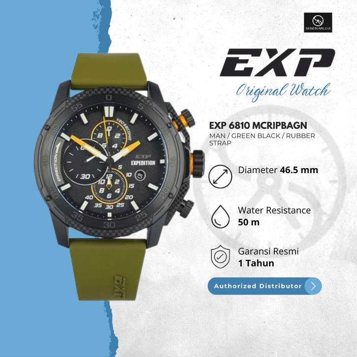 JAM TANGAN ORIGINAL EXPEDITION PRIA EXP 6810 / E6810 STRAP RUBBER TANGGAL DAN CHRONO AKTIF - Green Black Quartz Watch