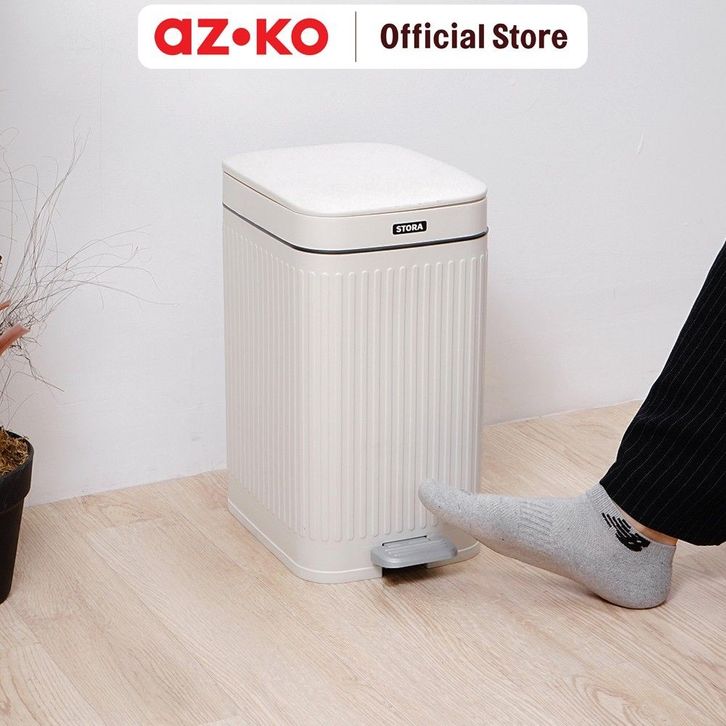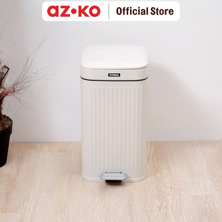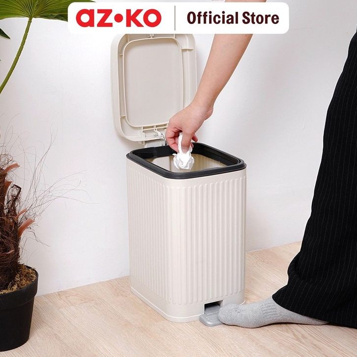AZKO Stora 14 Ltr Doric Tempat Sampah Pedal Slim - Putih Ivory Tong Sampah Wadah Pembuangan Alat Kebersihan Trash Bin