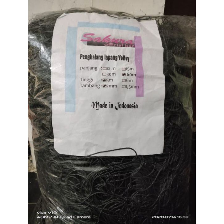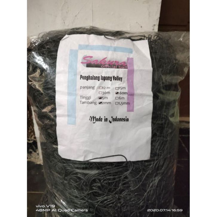 Jaring Pagar Lapangan Volley Ukuran 60 x 5 meter tebal tali 2 mm