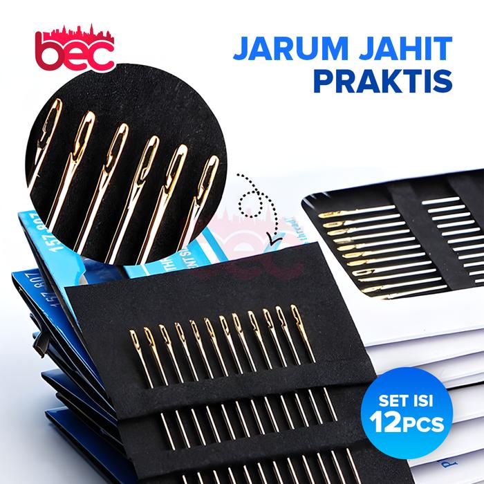 【BEC】Jarum Jahit Praktis set isi 12 pcs/Alat Bantu M3m45ukan Benang/Jarum Jahit Tangan Side Threading Needle