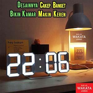 Murah THOME Jam Digital Dinding 3D LED Clock Bentuk Angka Modern Minimalis Alarm Lampu - Putih Promo