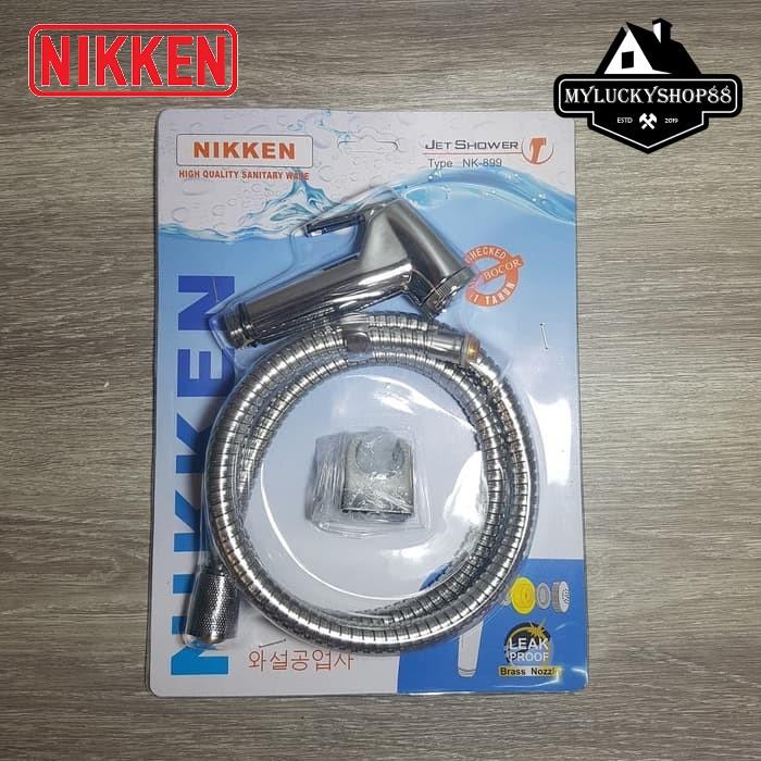 Terlaris Nikken Jet Shower Semprotan Cebok Silver Selang Flexible Jetshower WC Toilet Chrome Putih Biru - Biru Promo