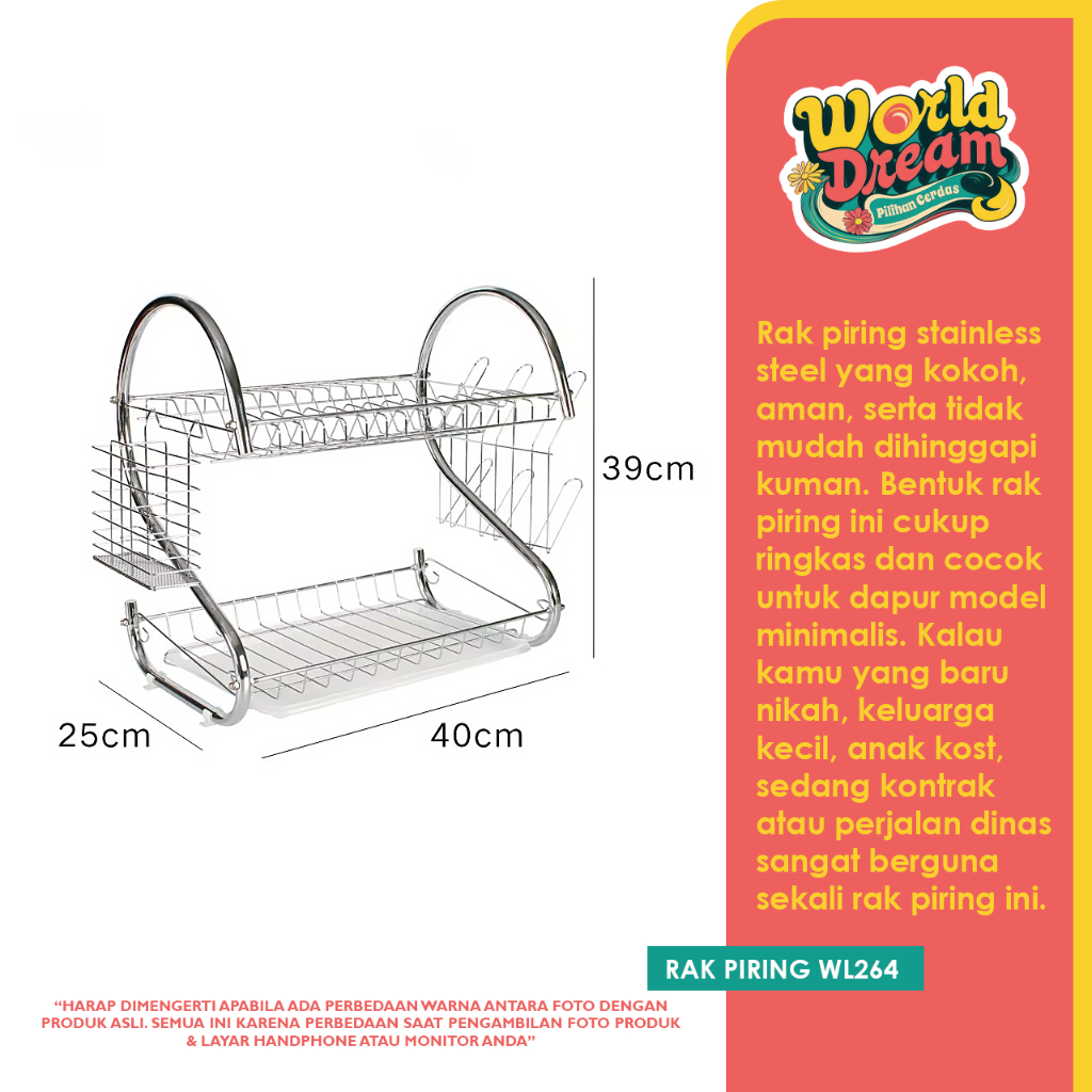 Worldream Rak Piring Stainless 2 Tingkat Rak Dapur Gelas Rak Sendok Rak Serbaguna Rak Piring Kost