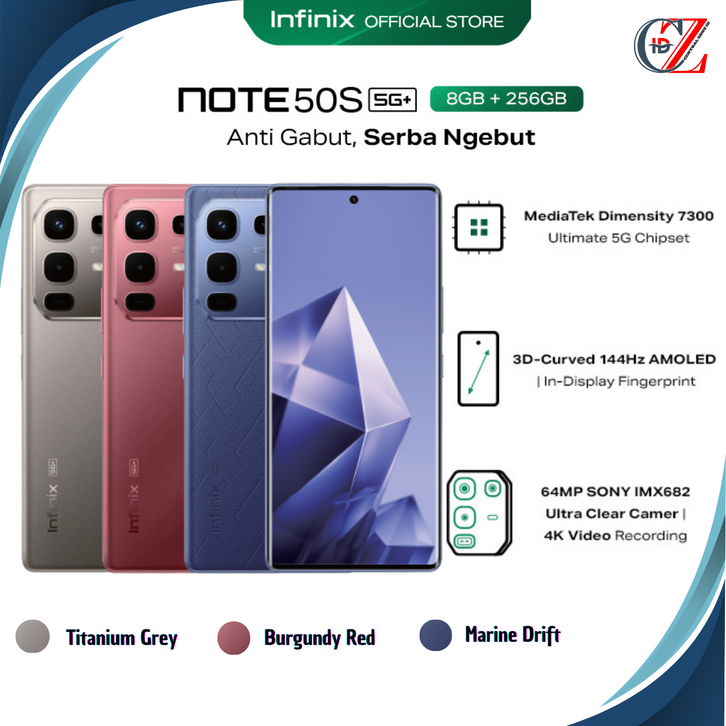 INFINIX NOTE 50S 5G+ 8/256GB UP 16GB DIMENSITY 7300 ULTIMATE 6.78” 3D CURVED FHD+ AMOLED-64MP-5200MAH NFC GARANSI LARIS