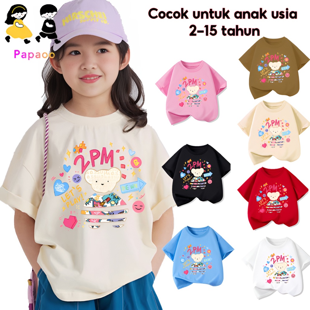 Kaos anak perempuan imut-imut 100% Cotton Beruang Berwarna-warni anak perempuan 2-15 THN kaos 30s Kaos Anak#522TZ