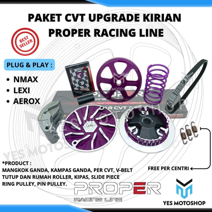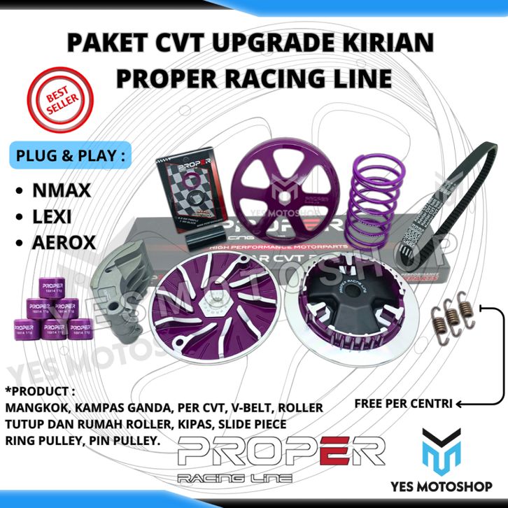 PAKET UPGRADE CVT PROPER RACING LINE NMAX AEROX LEXI PULLEY SET MANGKOK KAMPAS GANDA ROLLER PER CVT