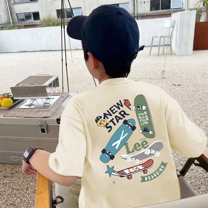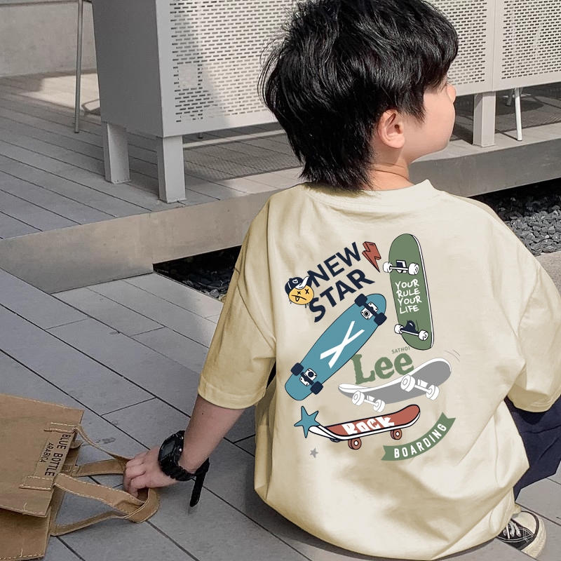 korea style Aprikot cocobaby cotton Kaos Atasan Anak laki-laki Perempuan Game Skateboarding Tshirt anak 2-12 Tahun
