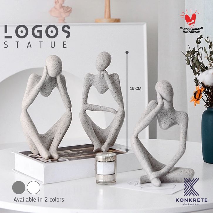 3 pcs Concrete Statue 15 cm - Logos Konkrete Photoprops - Pajangan Estetik Patung Semen - Dekorasi Meja Industrial Unik