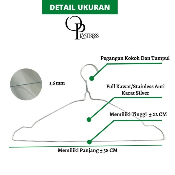 Hanger Gantungan Baju Pakaian Kawat Jemuran Stainless Silver