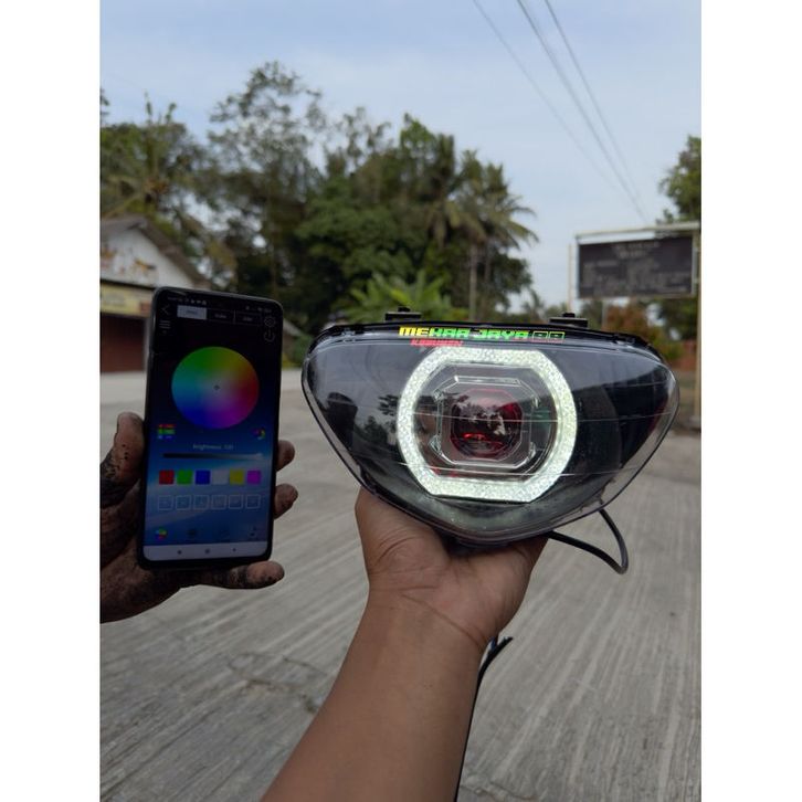 LAMPU DEPAN BILED MATRIX RGB MIO SEPORTIY LAMA SHURD AKRILIK SETELAN APLIKASI UKURAN 4,5 INC