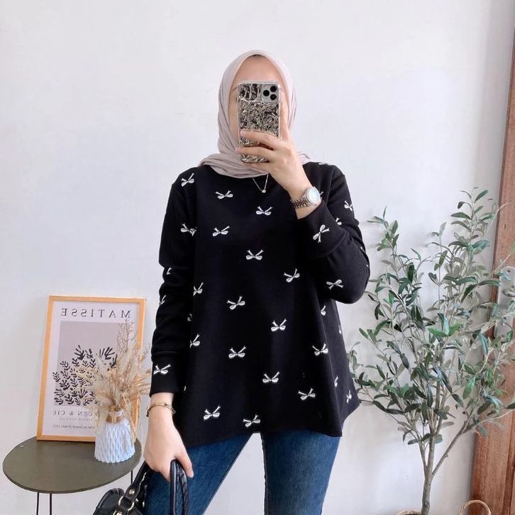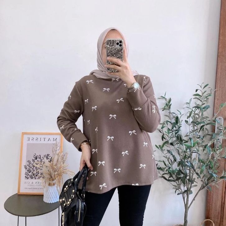GFS Jovela Top Bahan Spandek Printing Lengan Panjang