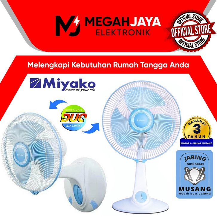 [ READY] MIYAKO 2 IN 1 DESK FAN + WALL FAN / KIPAS ANGIN KAD1227 B / KAD 1227 B / KAD 1227 B 12 INCH GARANSI RESMI