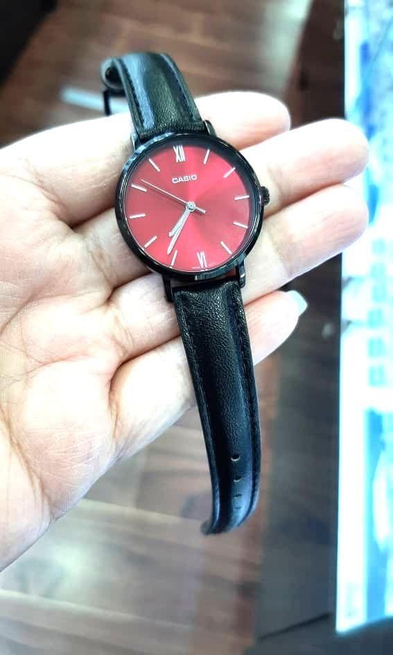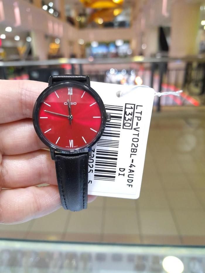 Jam Tangan Wanita CASIO LTP-VT02BL-4AUDF Analog Kulit Merah Hitam