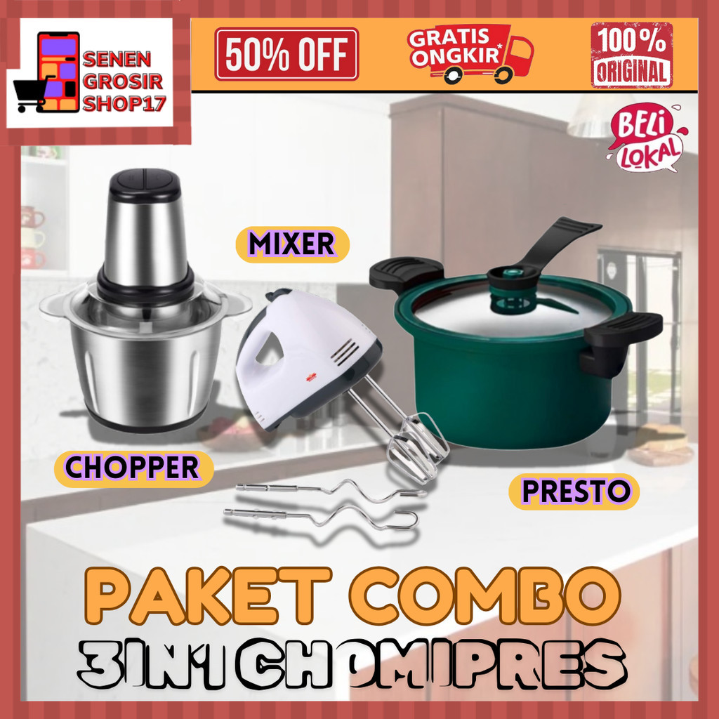 Vishal Combo 3in1 [ ] Panci Presto + Blender Penggiling Daging Stainless + Pisau Set 6in1