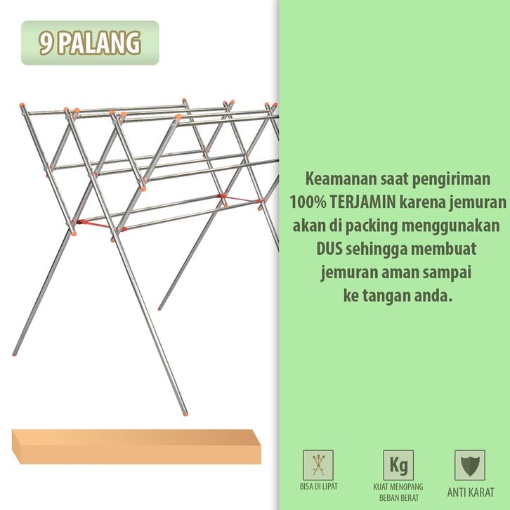 JEMURAN BAJU STAINLESS JUMBO ALUMUNIUM MINIMALIS LIPAT PORTABLE DINDING GANTUNG PANJANG 9 BESAR SUPER MURAH