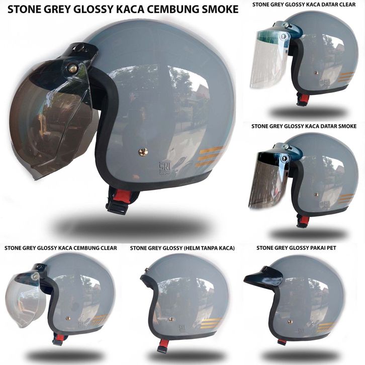 HELM PAKAI PET, KACA CEMBUNG CLEAR, KACA CEMBUNG SMOKE, KACA DATAR CLEAR, KACA DATAR SMOKE