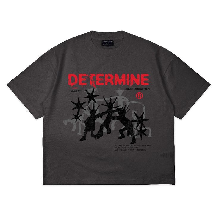AccentAmbios Boxy Oversized T-Shirt Determine Dark Gray Unisex - Cotton Combed 20s
