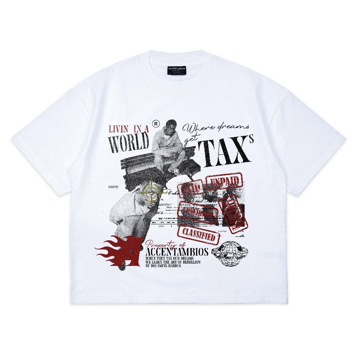 Kaos Pria Distro Original Oversize Boxy T-Shirt Tax White Unisex Cotton Combed 20s Keren Terbaru Best Seller