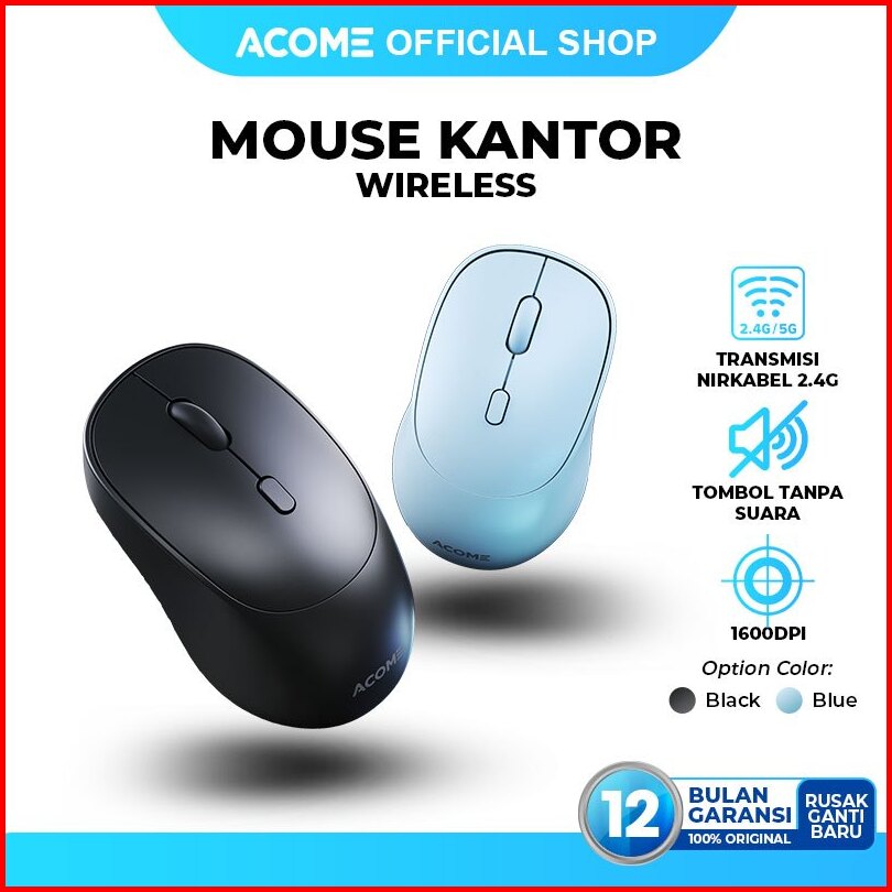 Acome Mouse Am600 Fashion Color Wireless 1600 Dpi Silent Click Optical Kursor Akurat Cocok Untuk Pc Laptop Original - Ga