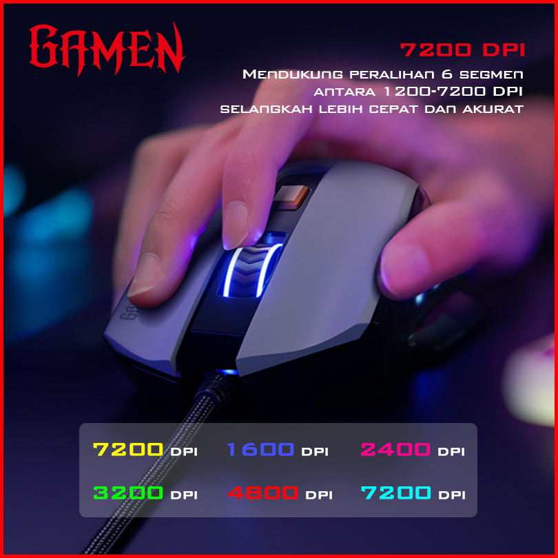 Gamen Mouse Gaming Kabel 7200 Dpi 6 Level Dpi 16.8 Juta Warna Rgb 13 Mode Rgb Gm300 Black Myth Wukong 6 Macro Button For