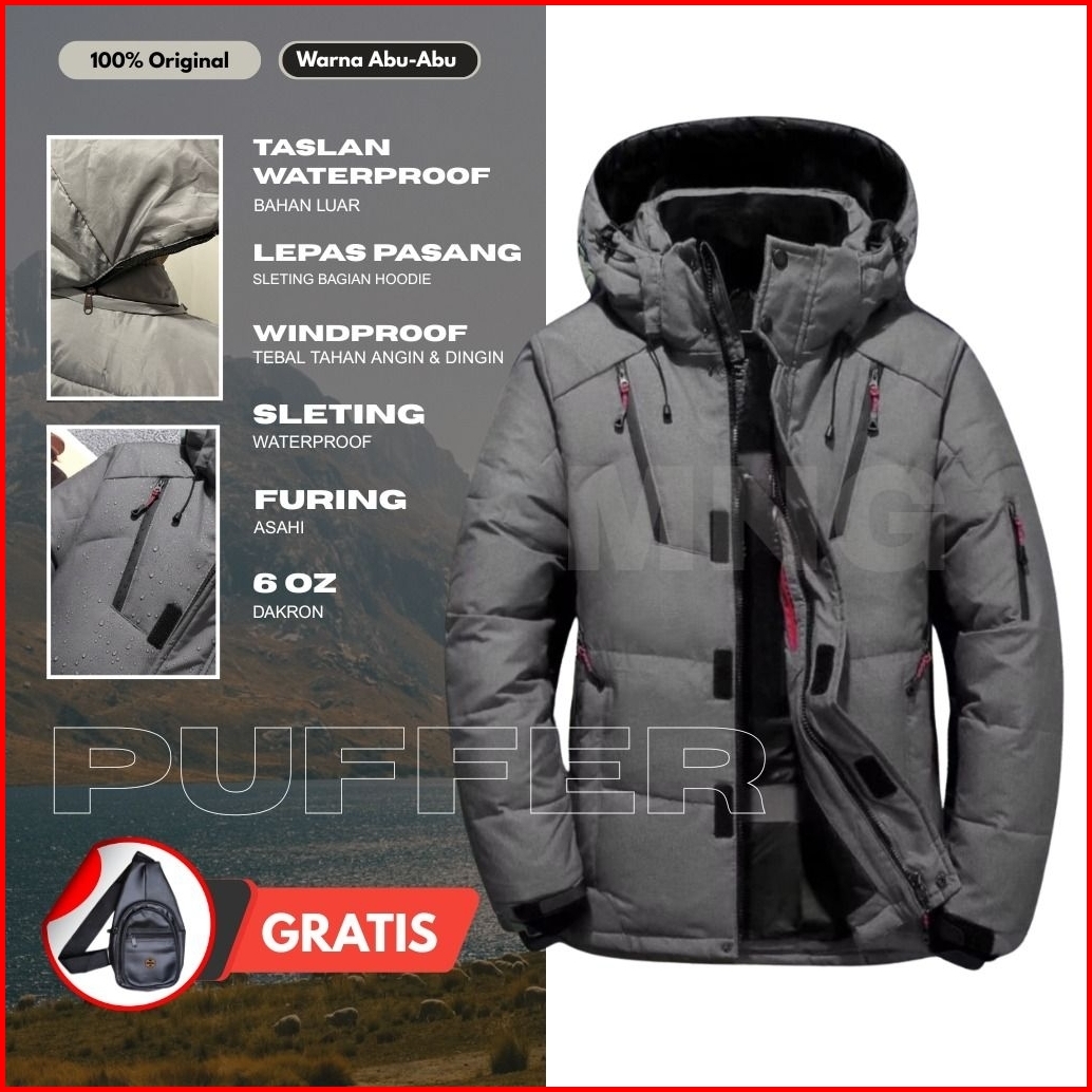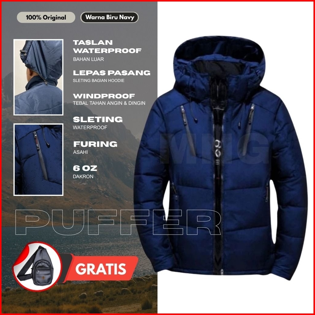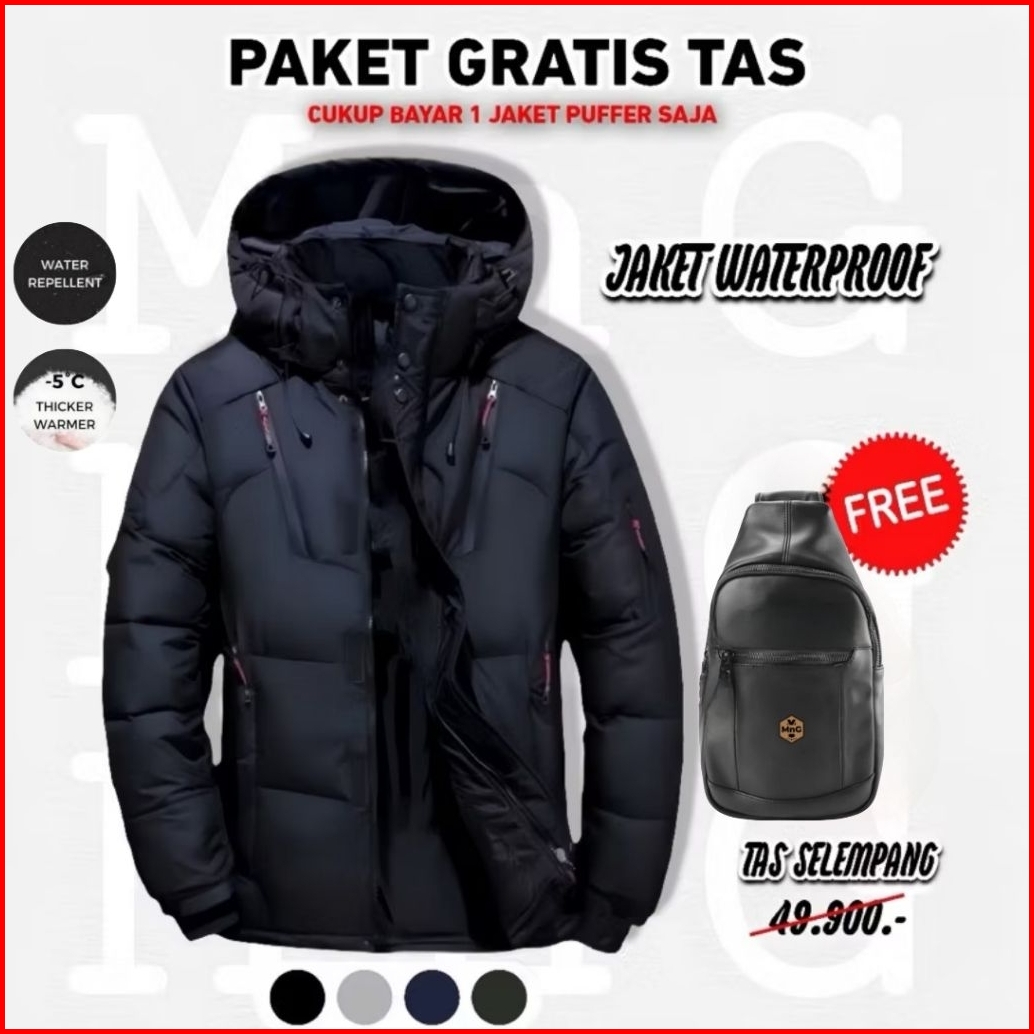 Mngstoreco Jaket Pria Waterproof Tebal Warna Hitam