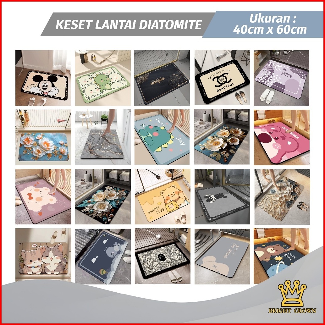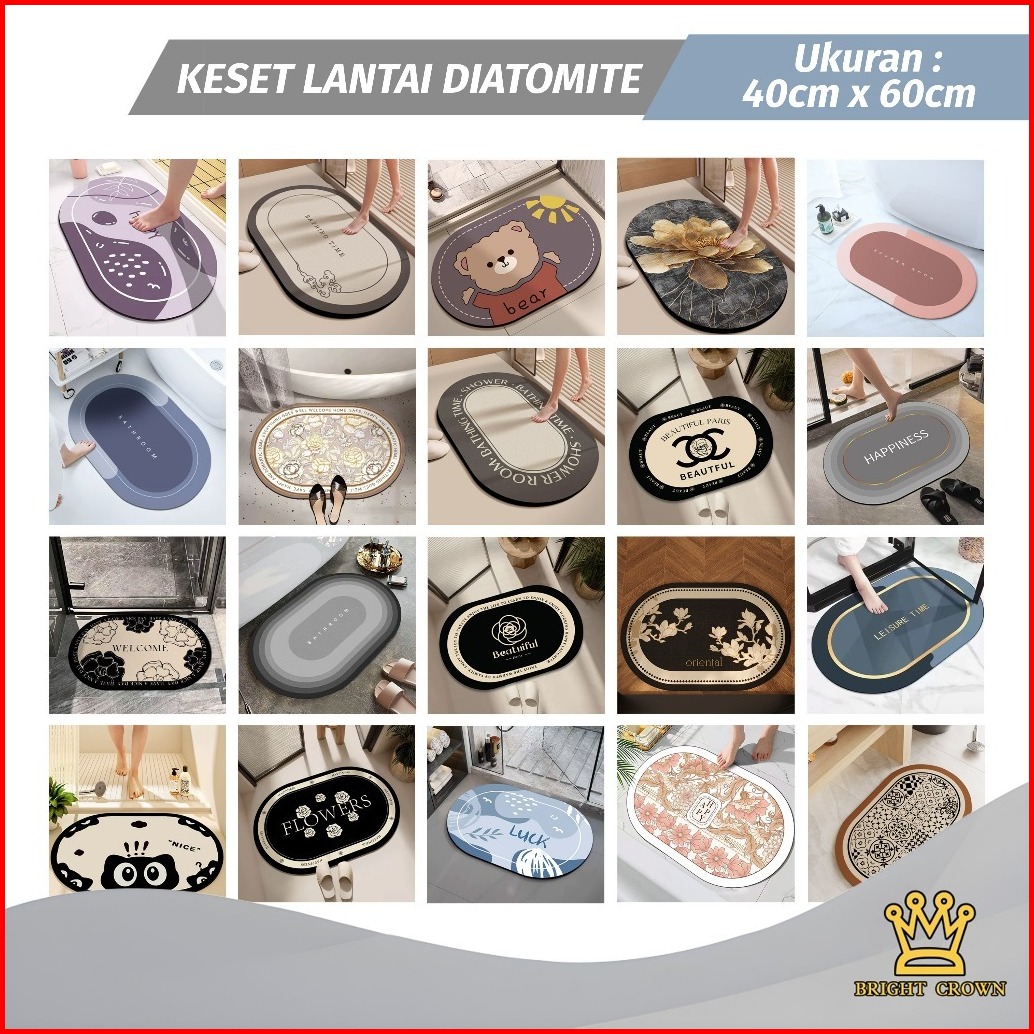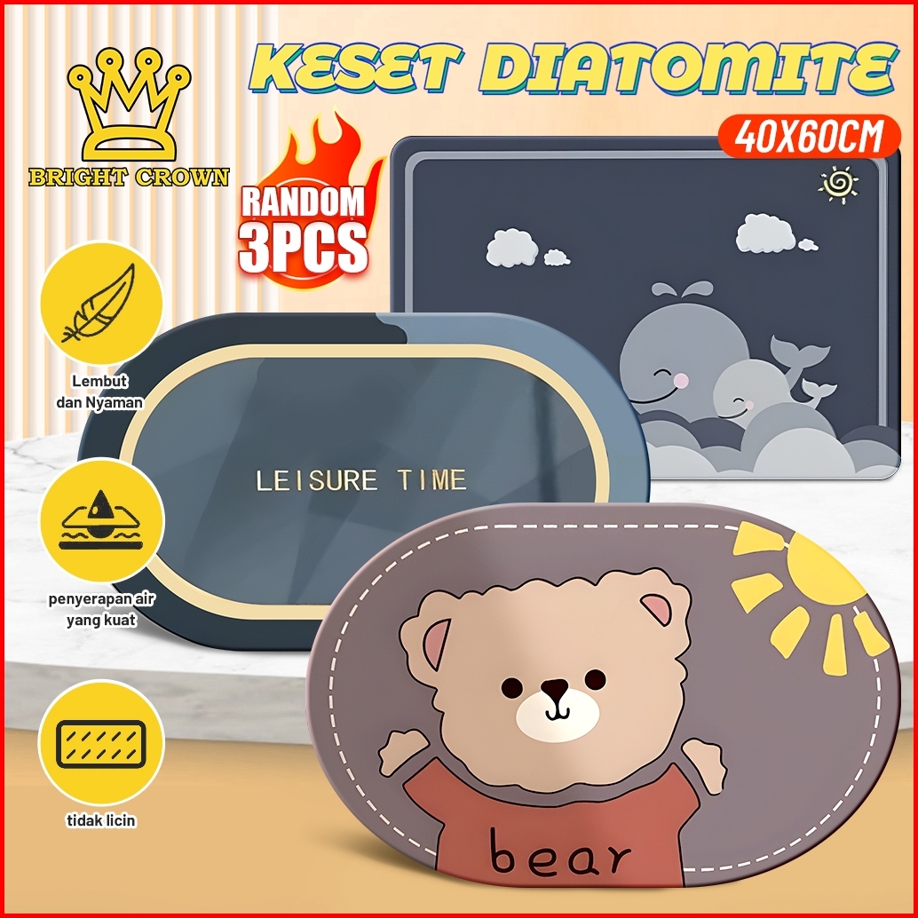 Bright Crown Paket 3pcs Motif Random Keset Diatomite Persegi Dan Bundar Uk 40x60cm