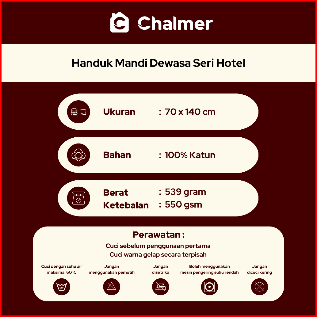 Handuk Mandi Hotel Chalmer 70 X 140 Cm Handuk Hotel Premium Tebal