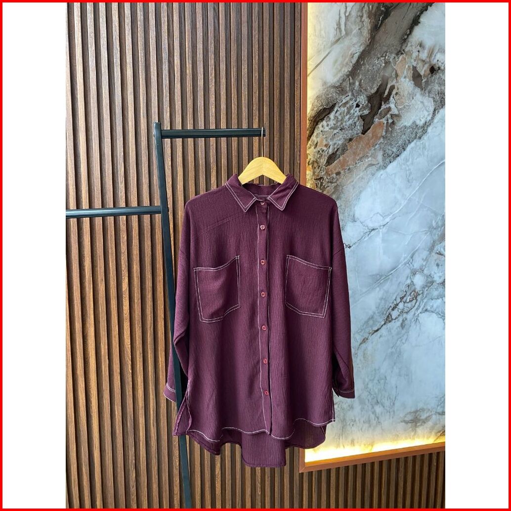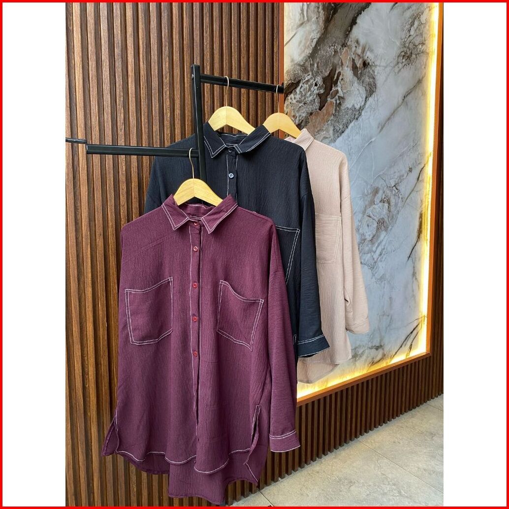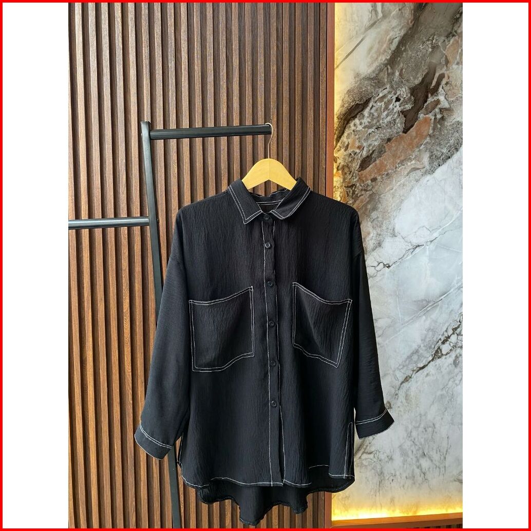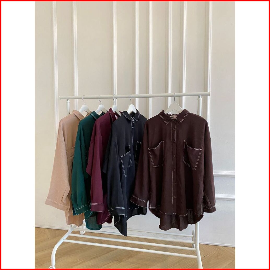 Aire Kemeja Wanita Lengan Panjang Korean Style Kekinian Kemeja Benang List Putih Kemeja Formal
