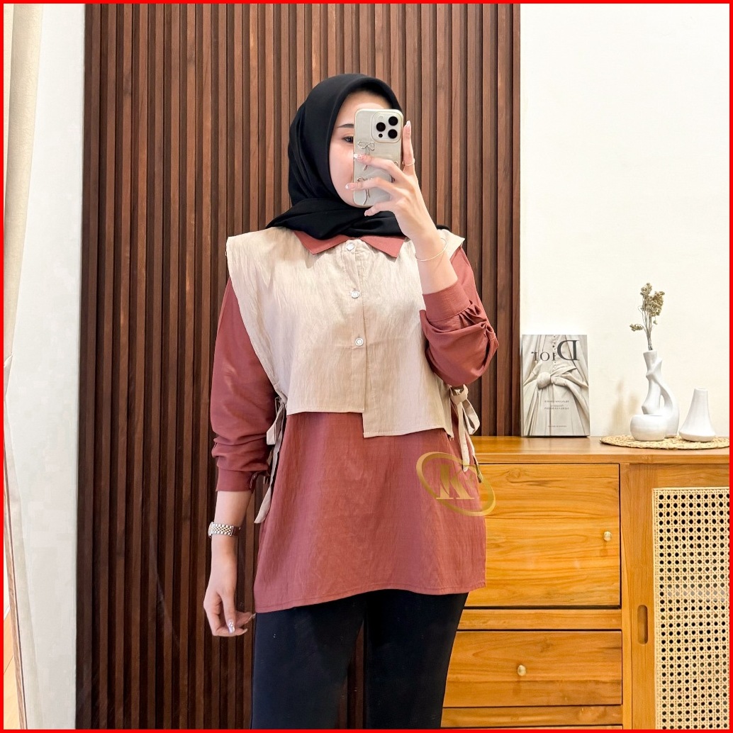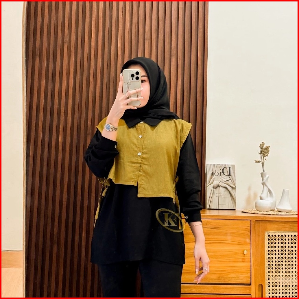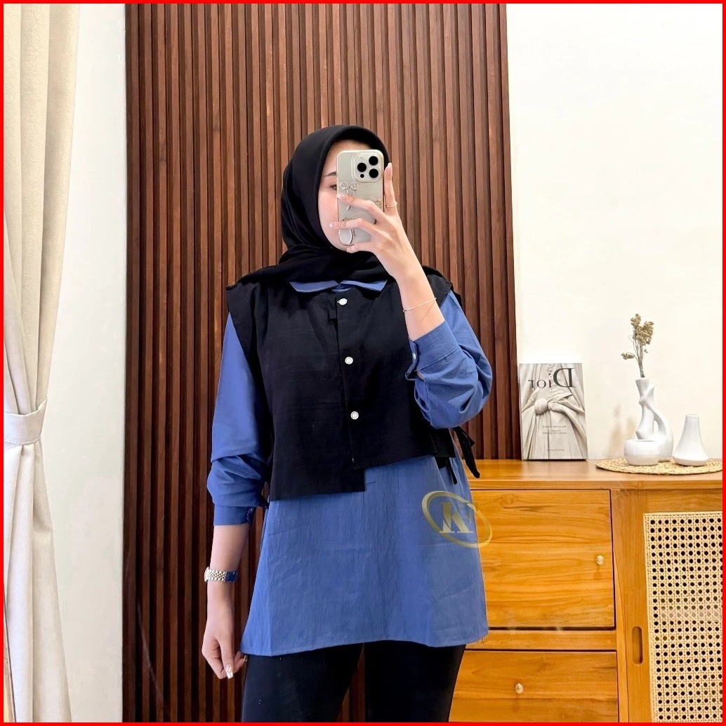 Isabel Kemeja Vest Wanita Polo Linen Korean Minimalis