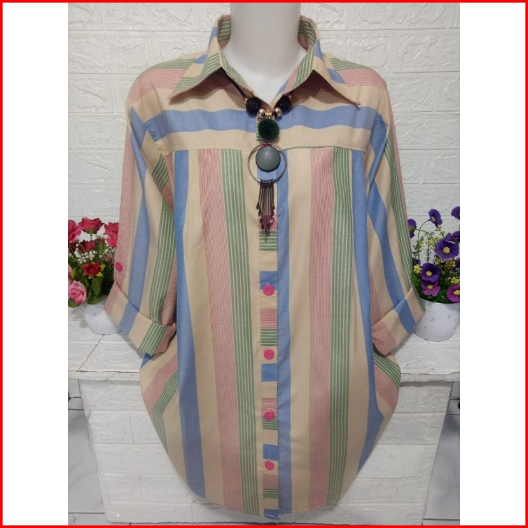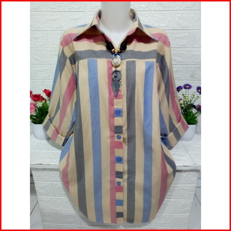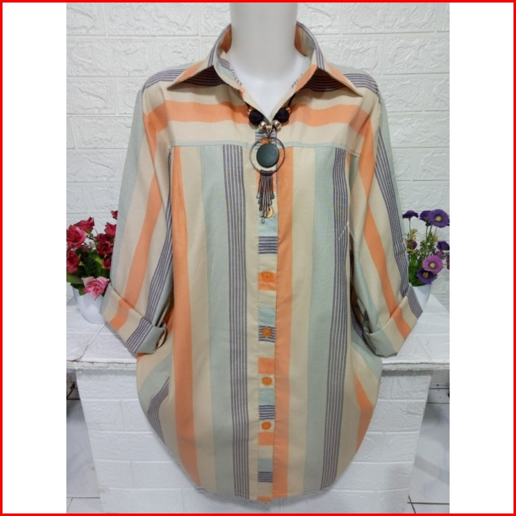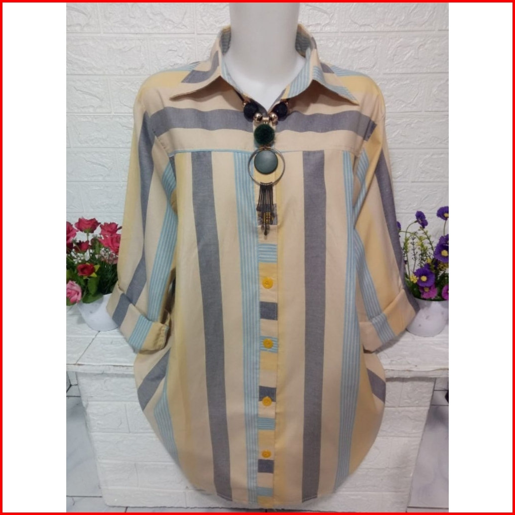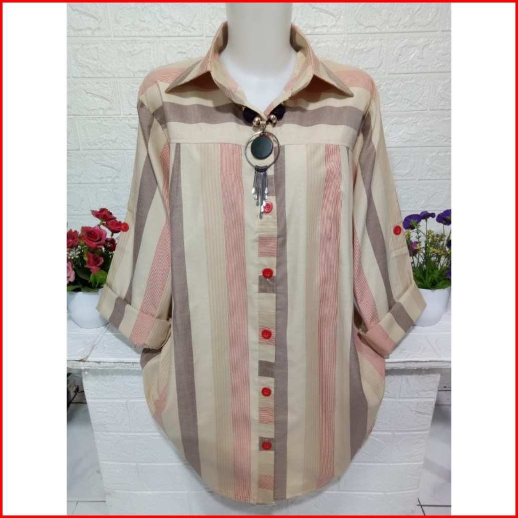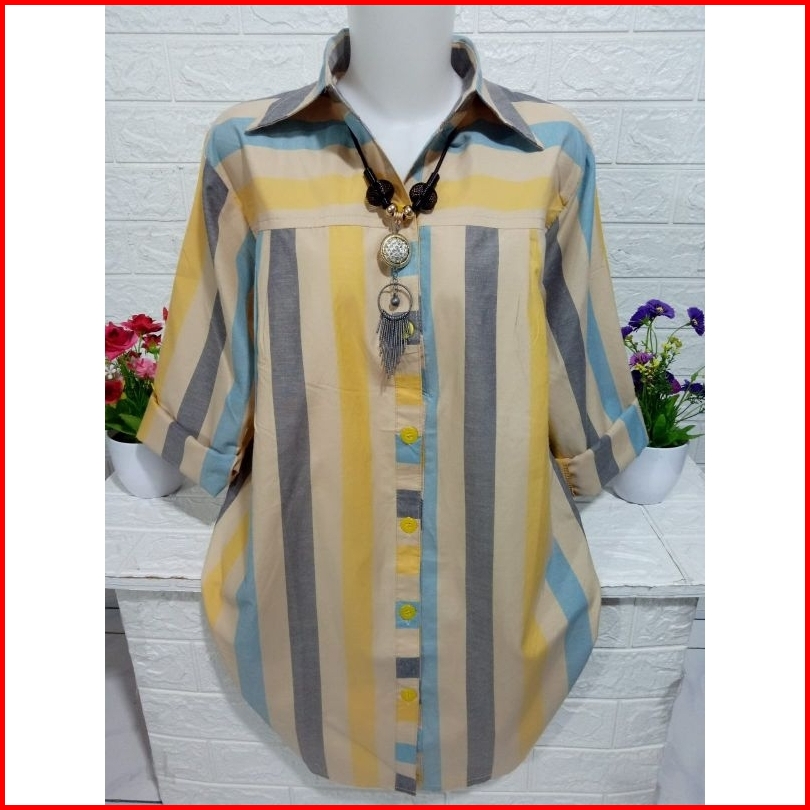 Kemeja Wanita Atasan Motif Salur Bahan Katun Km039a