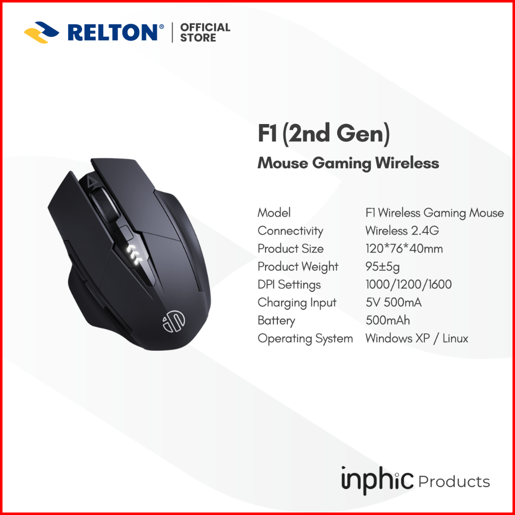 Mouse Gaming Wireless Silent Click Rechargeable Battery F1 Inphic