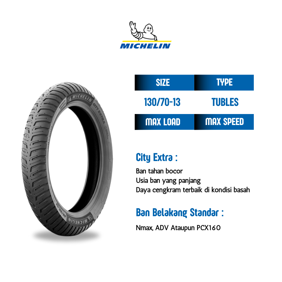 Ban Belakang Motor Nmax Michelin City Extra 130-70 Ring-13 Ban Tubles